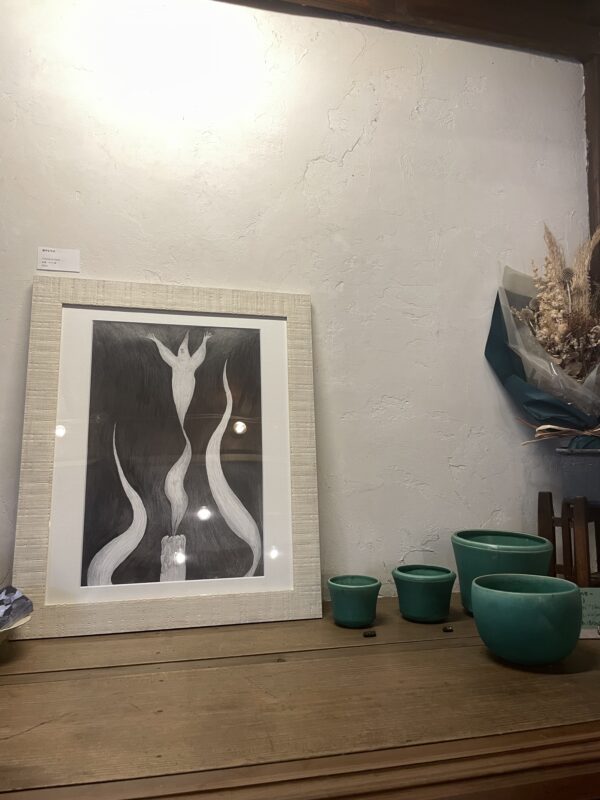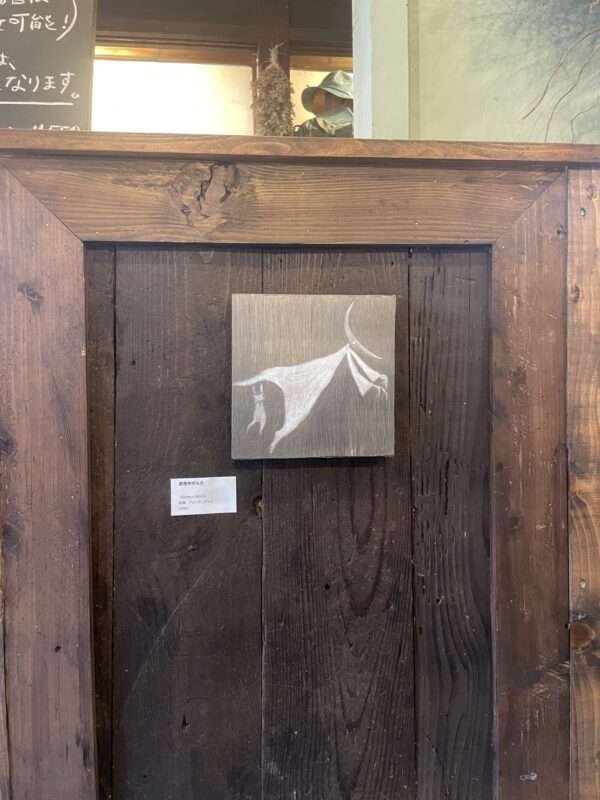 落ち着いた雰囲気がとても気に入ったので、店主さんに絵を飾らせていただけませんかと尋ねたところ快く対応していただきました。ありがとうございます。